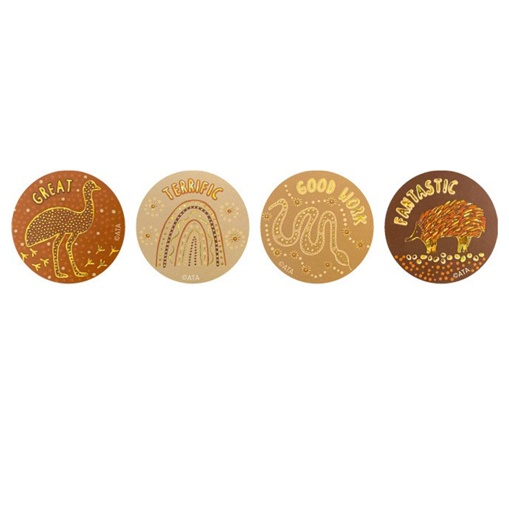Reward students with these deluxe Country Connections – Gold Foil Stickers featuring artwork by contemporary Aboriginal artist, Daisy Hill.
