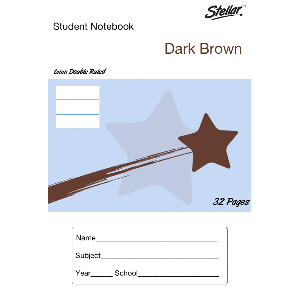 Dark Brown Student notebook size with 32 page potrait 6mm Double Ruled and Guide.