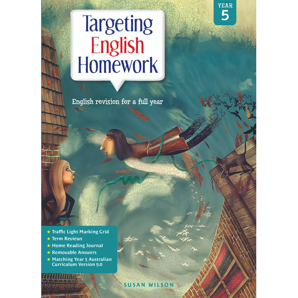 The Targeting English Homework activity book provides Year 5 English revision of the Australian Curriculum Version 9.0.
