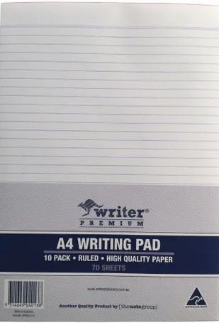 Home / Exercise Books / Notebooks / Writer A4 70 Sheet Premium Bond Pad Ruled 2 sides
