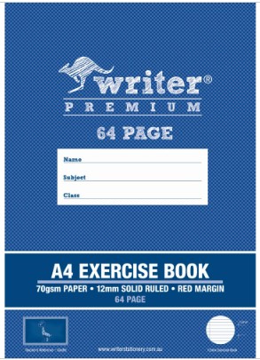 Writer Premium A4 64pg Exercise Book 12mm solid ruled + red margin – Giraffe